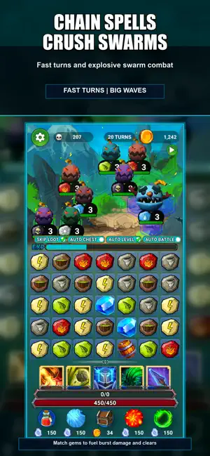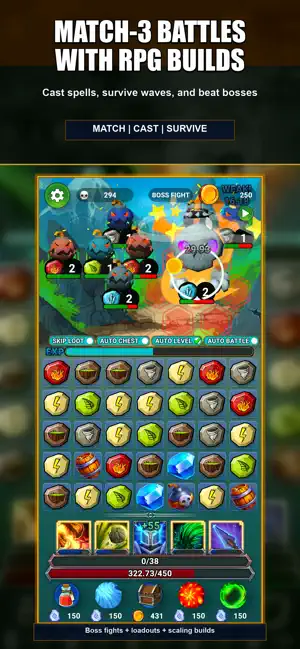 Match Magic RPG is a mobile puzzle RPG built around match-based combat, progression systems, quests, challenge modes, boss encounters, a leaderboard, and 99 achievements.